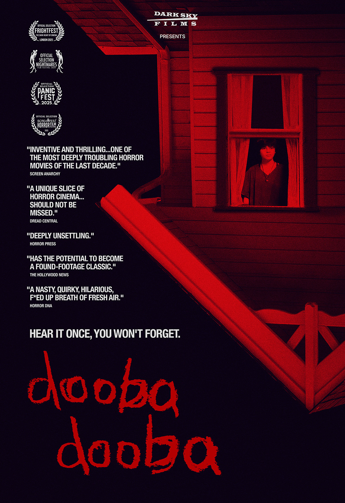 Shot entirely on in-home security camera and drawing on elements of analog horror popularized on YouTube, Dooba Dooba follows Amna as she arrives for what she assumes will be a typical babysitting gig. She realizes she’s very mistaken when she learns that Monroe, the girl she’s babysitting, is not only sixteen, but suffers from severe anxiety after having watched her brother get murdered when she was a child. Monroe’s behavior becomes increasingly unbearable until Amna questions whether she wants to stay, not realizing she has no choice.